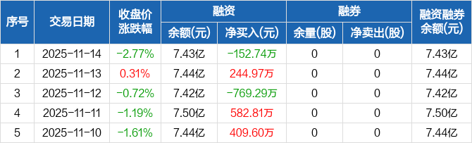 达梦数据融资融券信息显示,2025年11月14日融资净偿还152.74万元;融资余额7.43亿元,较前一日下降0.21%。