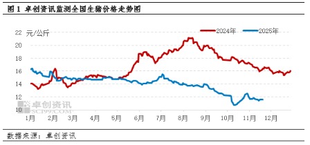 综上所述,2025年12月生猪市场将呈现“供需双增”的格局,但需求端的增量或难抵供应端的增量,猪价下跌预期较高。尽管腌腊旺季的阶段性需求可能为价格提供短期托底,但整体下行趋势难以改变。卓创资讯预测,12月全国生猪均价或在10.8-11.3元/公斤区间运行,较11月仍有下跌空间。对于养殖主体而言,当前应理性看待旺季行情,避免过度压栏,及时根据自身养殖成本和市场价格调整出栏进度,避免在市场情绪影响下集中出栏,导致价格踩踏。