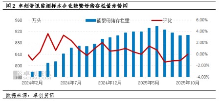 供应方面,当前生猪供应端的三重压力已为12月的价格下行埋下伏笔。首先是产能过剩的基础性压力,据卓创资讯统计2025年2月能繁母猪存栏量环比增加,增幅为1.07%,按生猪养殖周期推算,对应12月的理论生猪出栏量将呈现环比增加趋势。