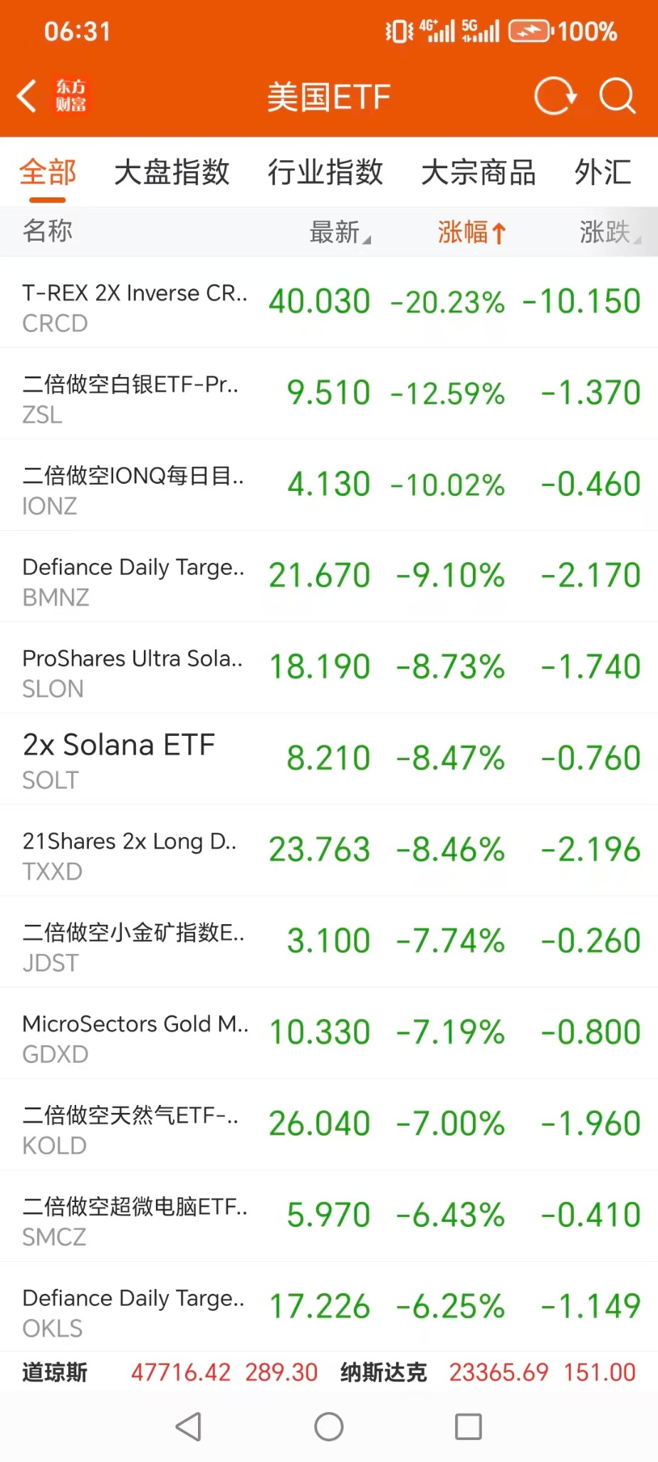 2倍做多白银ETF-ProShares(AGQ.US) 升12.96%,成交额4.38亿美元。