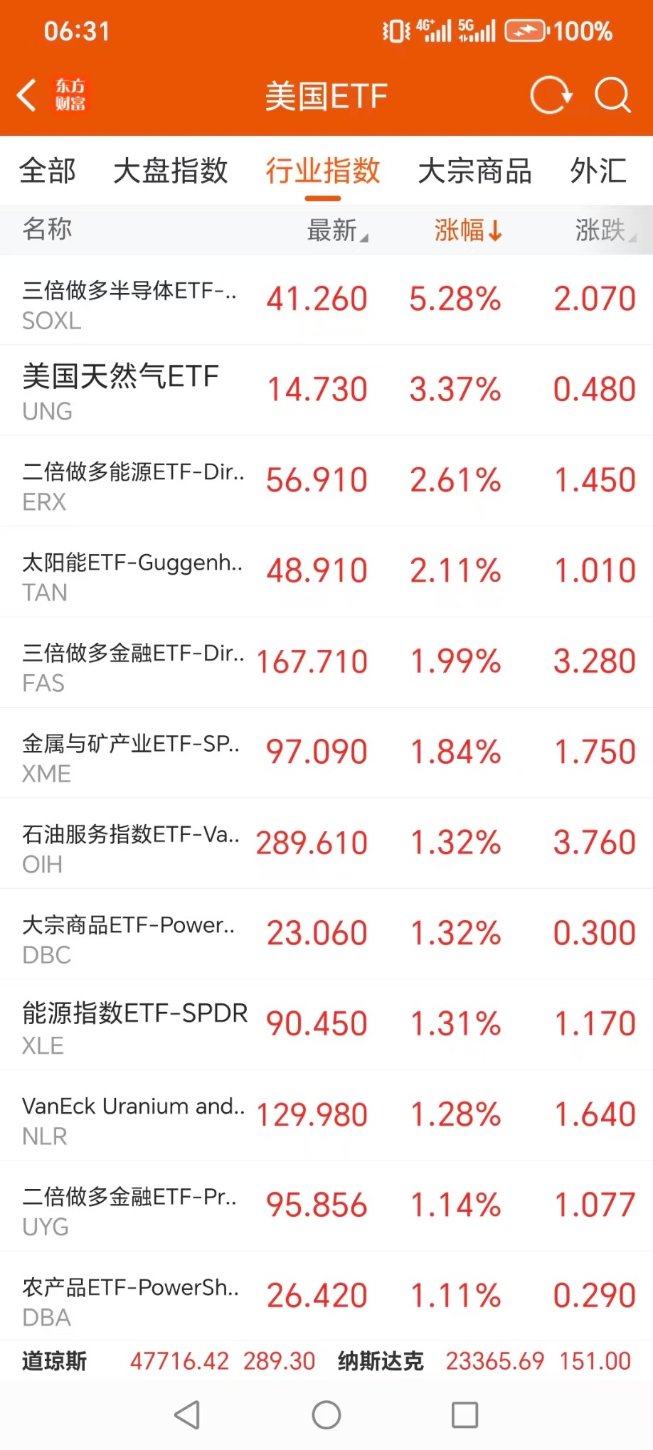 三倍做多金融指数ETF-Direxion(FAS.US) 升1.99%,成交额3323.64万美元。