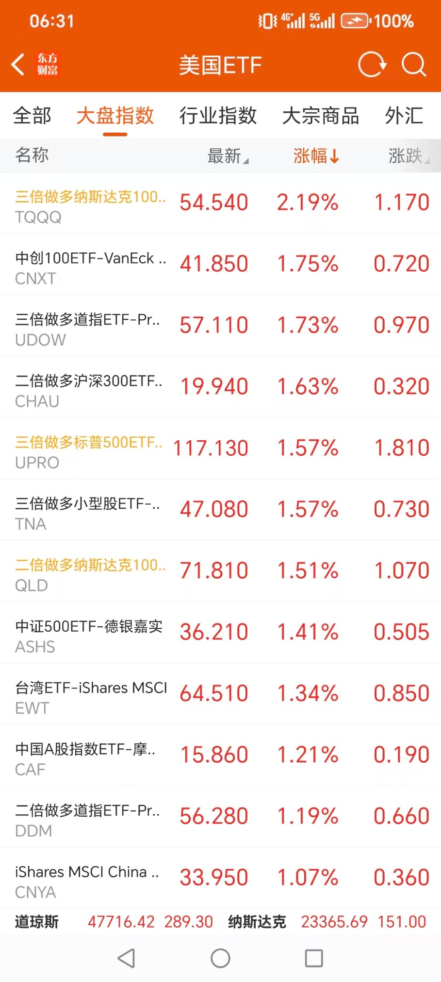 三倍做多道指30ETF-ProShares(UDOW.US) 升1.73%,成交额5743.75美元。