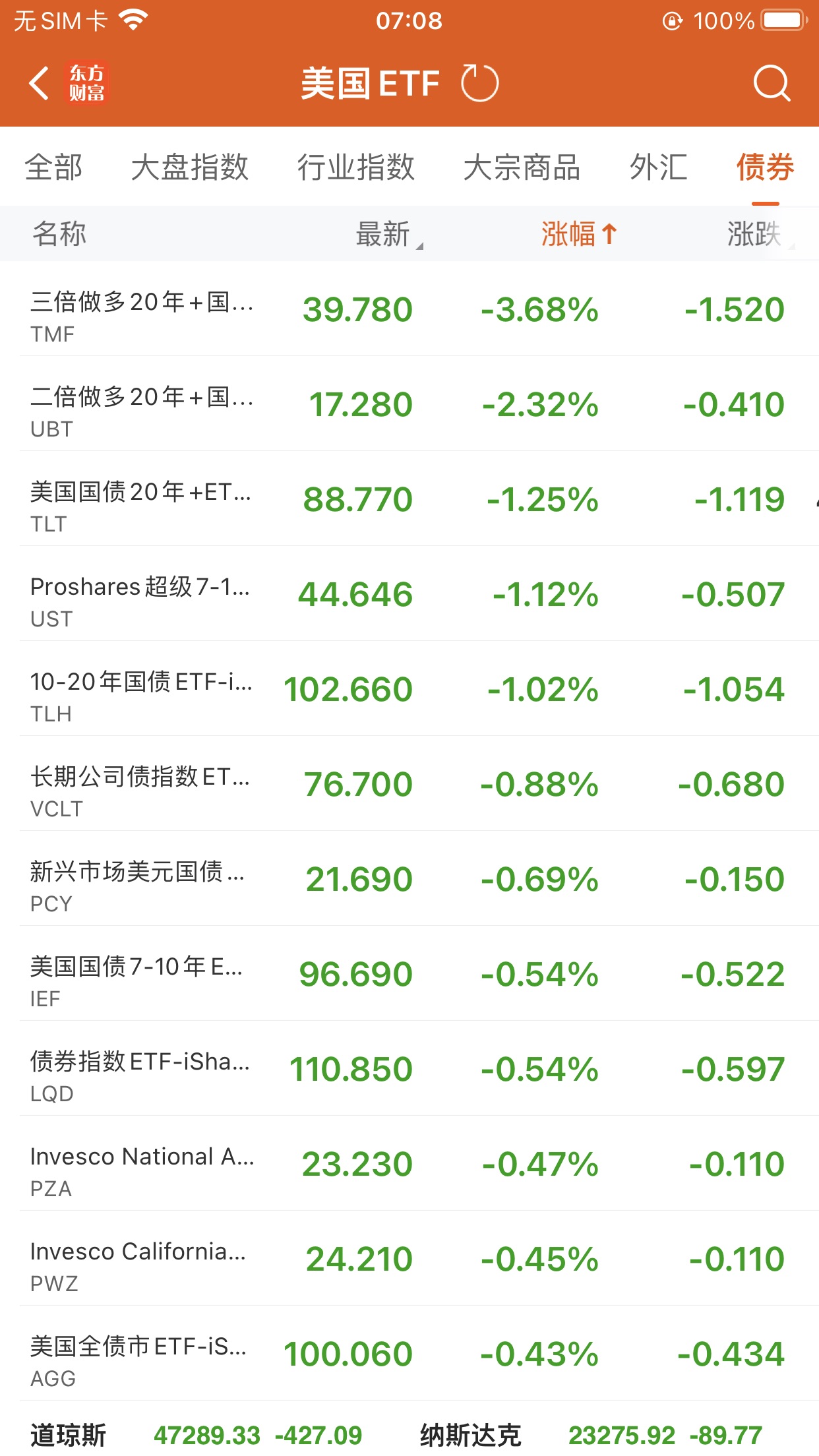 20+年以上美国国债ETF-iShares (TLT.US) 跌1.25%,成交额41.55亿美元。