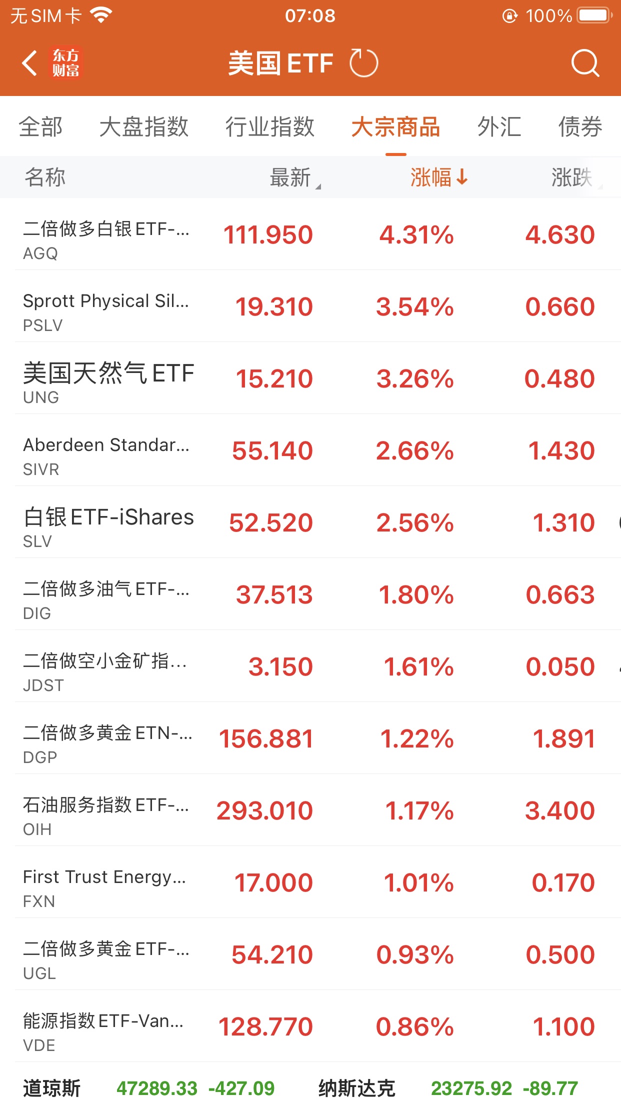 2倍做多白银ETF-ProShares (AGQ.US) 升4.31%,成交额6.13亿美元。