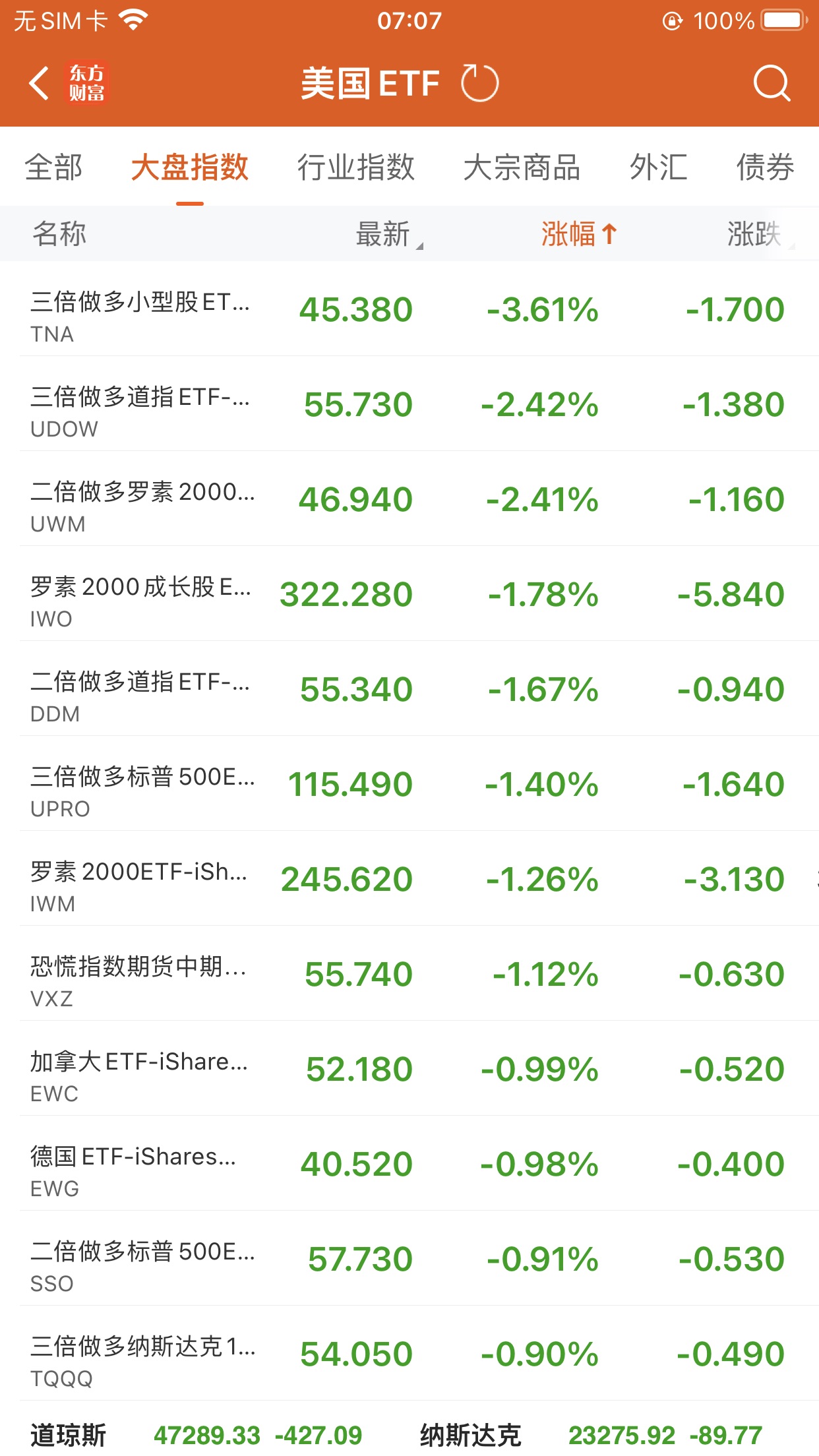 罗素2000成长股指数ETF-iShares (IWO.US) 跌1.78%,成交额1亿美元。