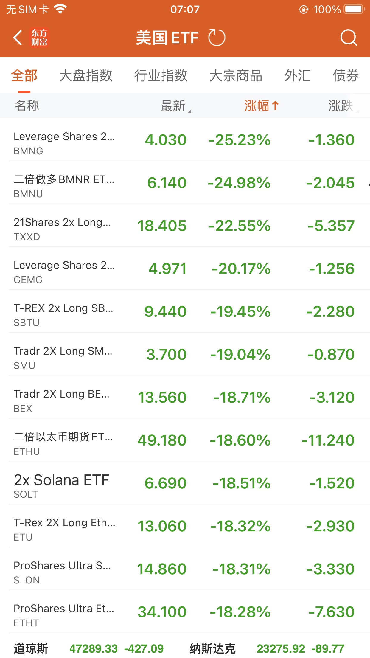 2倍做多BMNR ETF-Leverage Shares (BMNG.US) 跌25.23%,成交1438.34万美元。