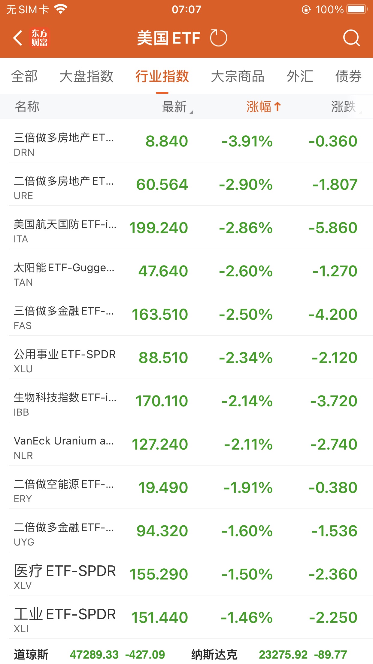 美股三大指数集体收跌,道琼斯指数 (.DJI.US) 跌0.89%, 纳斯达克综合指数 (.IXIC.US) 跌0.38%,标普500指数 (.SPX.US)跌0.53%。
