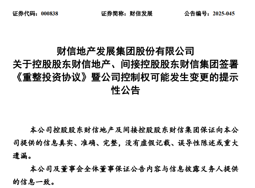 财信发展控制权或变更