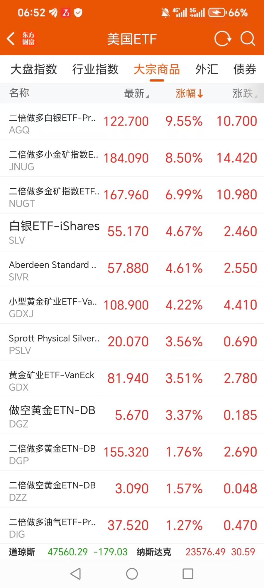 2倍做多白银ETF-ProShares (AGQ.US) 升9.55%,成交额5.52亿美元。