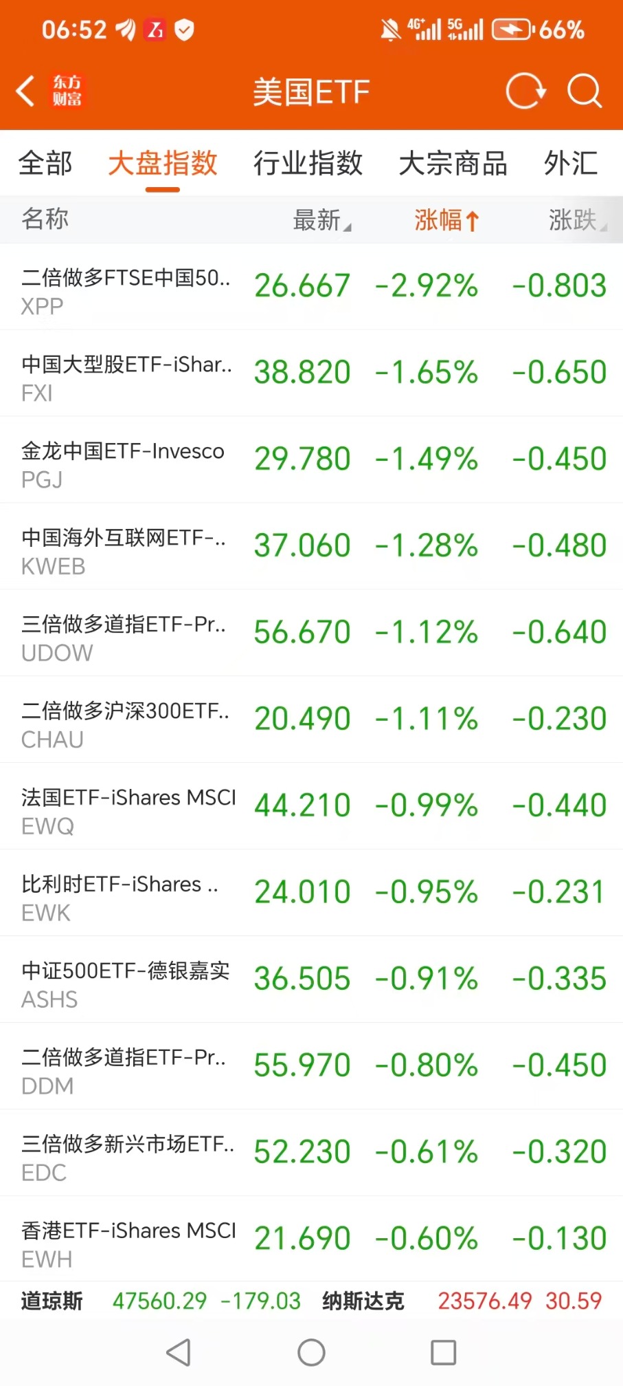 三倍做多道指30ETF-ProShares (UDOW.US) 跌1.12%,成交额2.48亿美元。