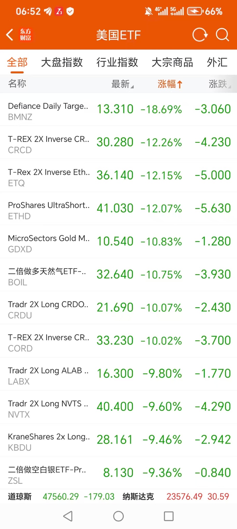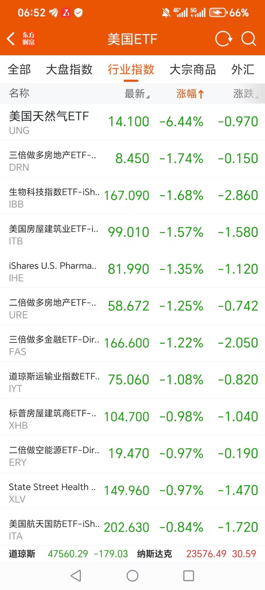 美国天然气ETF (UNG.US) 跌6.44%,成交额2.62亿美元。