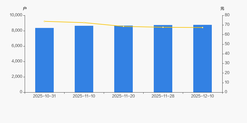 2025年10月31日至今,公司股东户数有所增长,区间涨幅为4.82%。2025年10月31日至2025年12月10日区间股价下降8.72%。