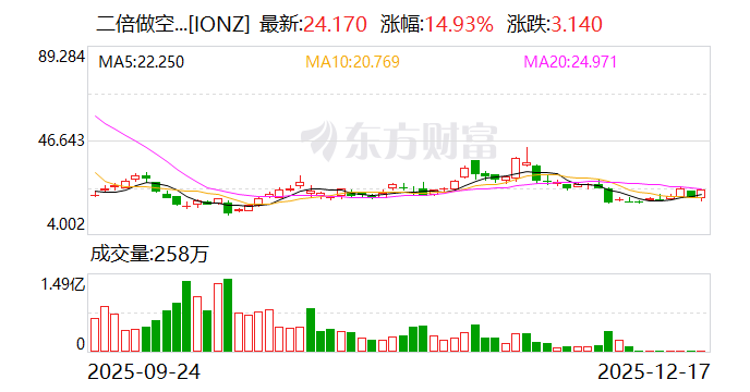 2倍做空IONQ ETF-Defiance (IONZ.US) 跌15.75%,成交额4750.91万美元。