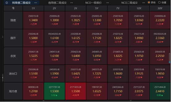 截至今日17:30,利率市场收益率多数下行,10Y国债下行0.6bp至1.84%,30Y国债下行1.25bp至2.23%。信用市场收益率多数下行,2Y期AAA信用债下行0.16bp至1.82%。债市早盘平开。中国央行开展593亿元7天期逆回购操作,净回笼760亿元。资金面中性,资金情绪指数50,资金价格较昨日下跌,DR001在1.30%附近,DR007在1.33%附近。