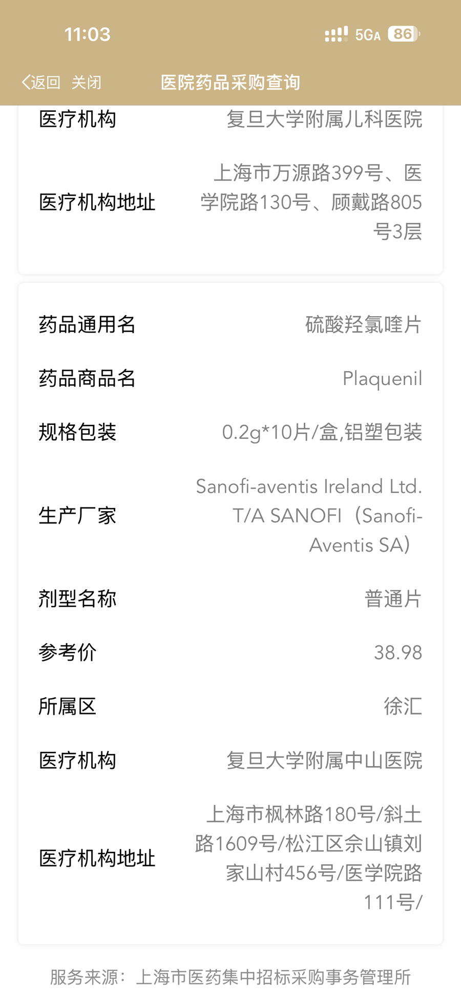 “随申办”显示徐汇区中山医院过去30天曾有过采购“赛能”的记录。