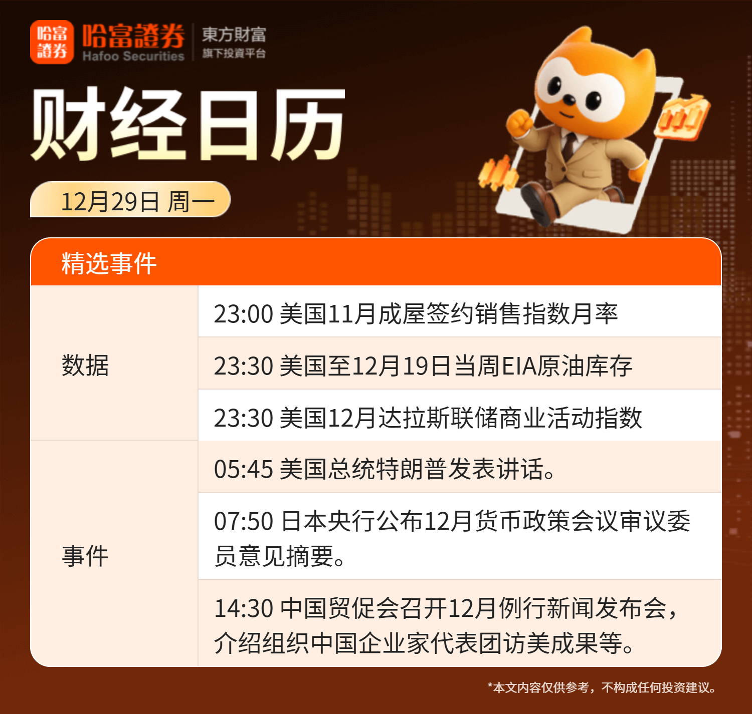 商品:COMEX黄金期货涨1.33%,报4563.00美元/盎司,创盘中历史新高,全周累计上涨4.06%。COMEX白银期货涨10.84%,报79.455美元/盎司。COMEX铜期货涨5.01%,报5.8545美元/磅,刷新盘中历史高位。WTI 2月原油期货收跌2.76%,报56.74美元/桶。布伦特2月原油期货收跌2.57%,报60.64美元/桶。