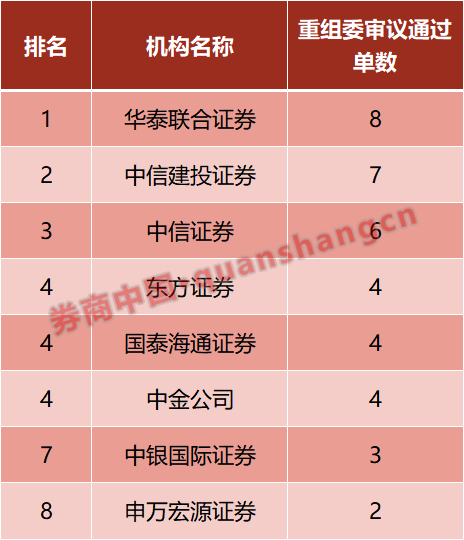 许可类重组审核通过口径,8家券商市占率78%,华泰联合证券排名第一