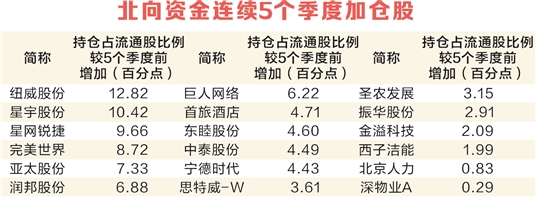 拉长时间来看,按照持股比例计算,18只个股连续5个季度获北向资金加仓,主要分布于机械设备、电力设备、汽车等行业,包括宁德时代、西子洁能、思特威-W等。