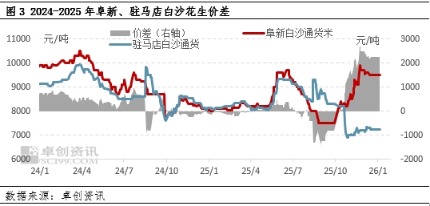 2025产季新花生整体供应宽松,区域间货源品质不同拉开价格差距。当前花生下游需求角度来看,油料米起到消耗供应的主力作用,商品米下游则逢低适量补库,整体由于2026年春节时间较晚,节日消费拉动有限,预计一季度花生价格阶段性走高后或延续偏弱走势。