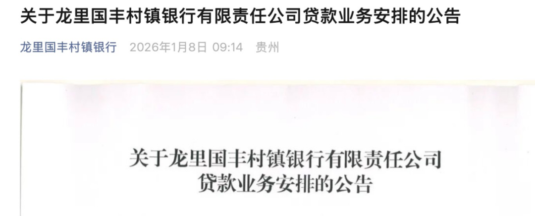 在讨论声中,近日,龙里国丰村镇银行和贵州银行发布了贷款、存款业务的调整公告。