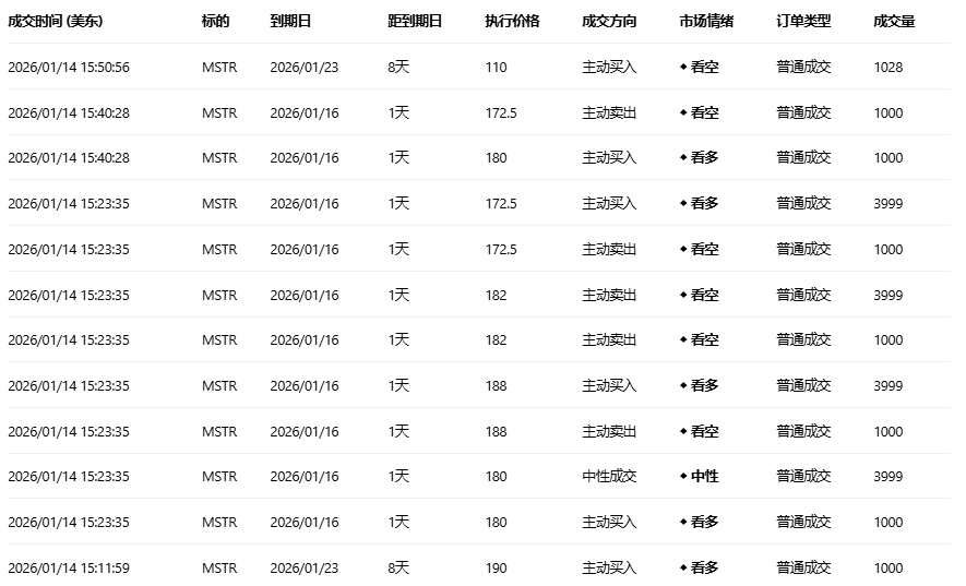 Strategy收涨3.66%,成交83.38万份期权合约,看跌/看涨成交量比降至0.58。Strategy公司宣布以12.5亿美元购买13627枚比特币,持币总量达687410枚,同时公司董事三年来首次增持股票,比特币价格突破97000美元推动相关股票上涨。
