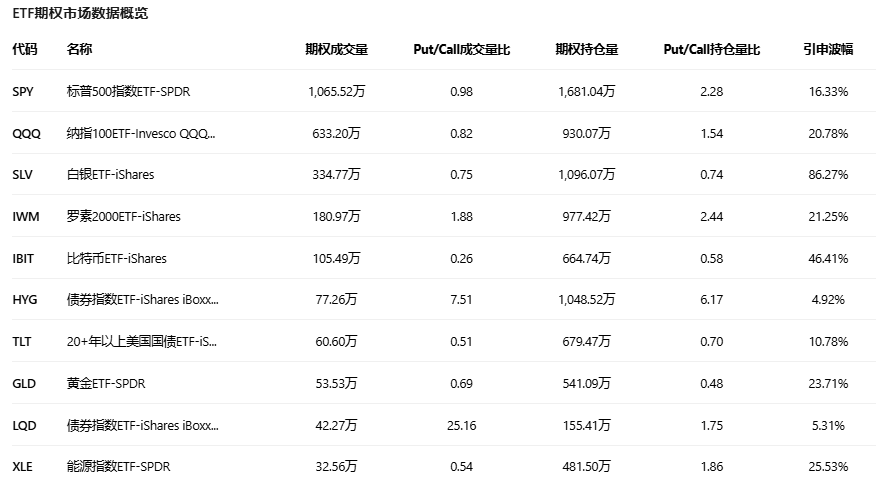 美东时间1月14日,美股指数期权市场成交量抬升,共成交648万份合约。看跌/看涨成交比下跌,达到0.93。