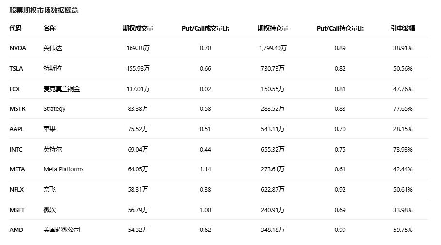 看跌/看涨持仓量比最高是美国超微公司,达到0.99。TCS与AMD宣布战略合作推动AI规模化应用,特朗普对AMD MI325X等先进计算芯片征收25%关税,分析师看好AI需求增长将推动CPU定价能力提升。
