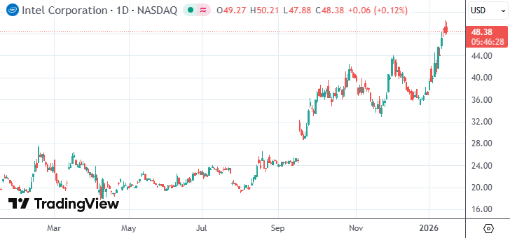 截至周四(1月15日)美股收盘,英特尔股价已累涨30.95%,在标普500指数成分股中排名第三,仅次于SanDisk和Moderna。值得一提的是,该股去年累涨84.04%,逐步收复了公司2024年在AI浪潮中落后竞争对手而暴跌60%的失地。