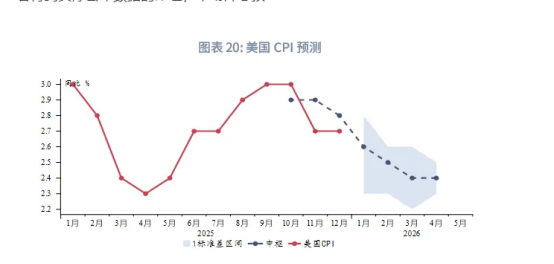 中国银河证券宏观首席分析师张迪通胀结果偏向温和,市场降息预期变化不大。通胀数据公布后美国短期利率小幅下行,根据期货市场定价显示,4月美联储降息的概率由数据公布前的约38%升至约42%。当前核心通胀仍在2.6%上方、服务价格黏性尚未明显回落,意味着4月降息更多是可以被讨论的选项,而不是已经被锁定的结果。更大概率的情形是,联储在3月维持利率不变,视后续两个月的通胀与就业数据,在4月到6月之间再次降息。 兴业证券研究外汇商品部目前美国高频基本面仍在上行周期,当前主要资产的交易逻辑大概率延续,美债10Y收益率也可能继续试探4.2%~4.3%阻力区间。预计1月末下旬至2月将进入潜在的基本面转弱时间窗口。我们的预测模型显示1月CPI将迎来显著的同比下行。若得到实际公布数据的印证,市场降息预期有望前置,届时将带动美债收益率下行。