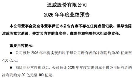 通威股份的亏损幅度更为显著,预计年度净亏损90亿元至100亿元,为三家之最。