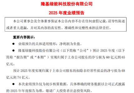 隆基绿能公告预计2025年归属于上市公司股东的净亏损为60亿元至65亿元。隆基绿能将亏损原因归结为多重因素叠加。一方面,2025年,光伏行业供需错配、低价内卷式竞争持续,开工率维持低位,同时国内电力市场化改革不断深入,海外贸易壁垒持续加剧,光伏企业经营环境严峻复杂。另一方面,四季度银浆、硅料成本大幅上涨,显著推升了硅片、电池及组件产品成本,使得企业经营进一步承压。
