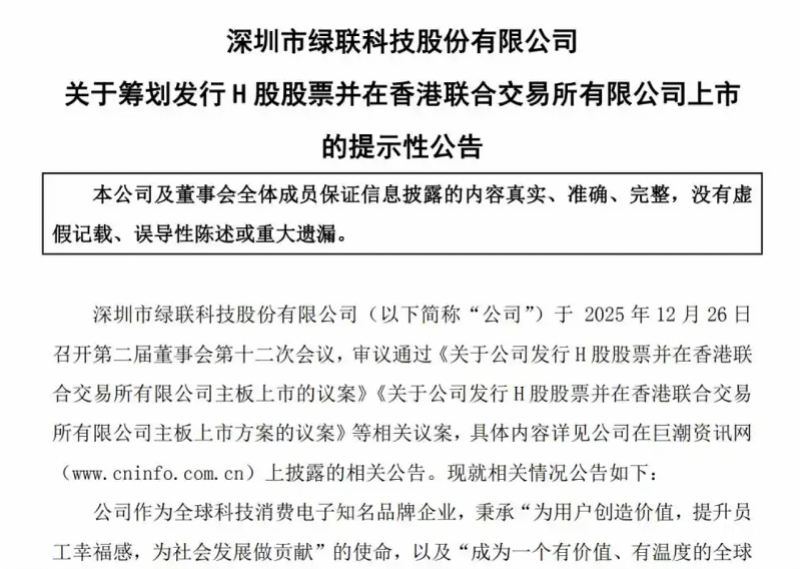 近期,消费电子跨境龙头绿联科技(301606.SZ)抛出重磅资本计划——在A股上市仅一年多后,正式启动港股IPO,剑指“A+H”双重上市。