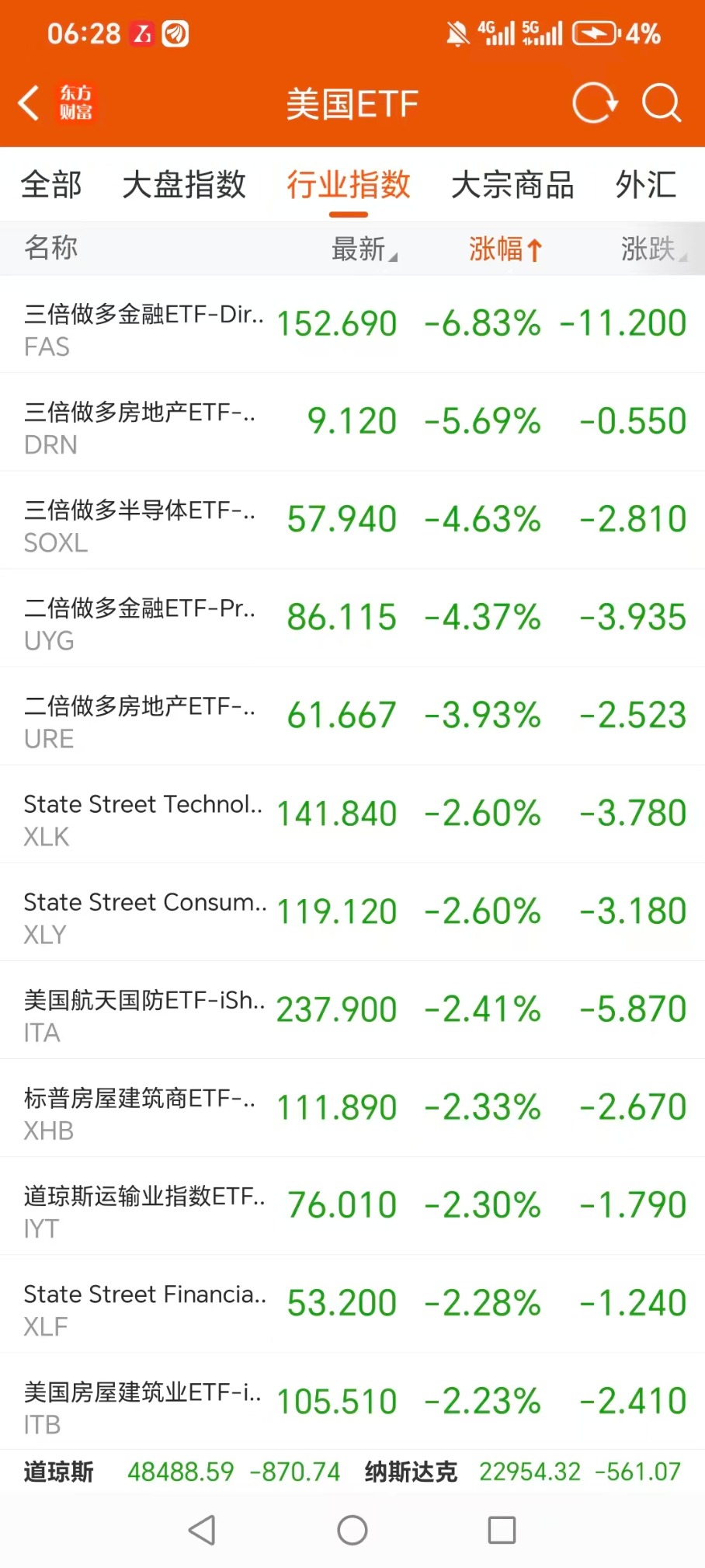 三倍做多金融指数ETF-Direxion(FAS.US) 跌6.83%,成交额1.7亿美元。