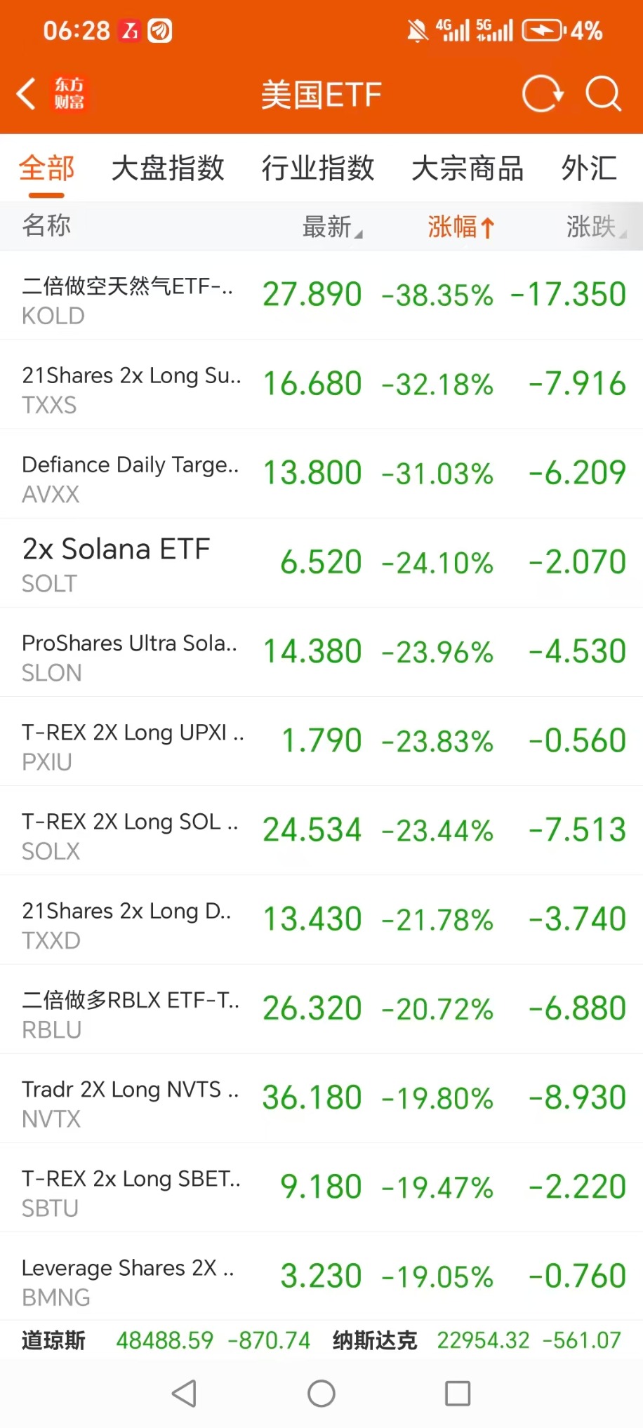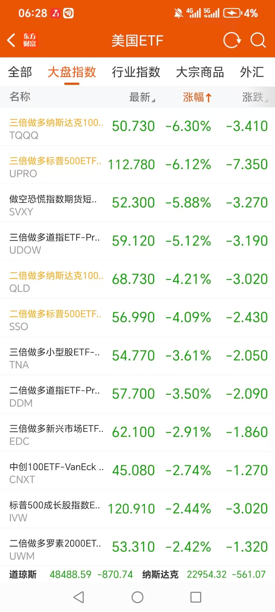 2倍做多纳斯达克100指数ETF-ProShares(QLD.US) 跌4.21%,成交额4.99亿美元。