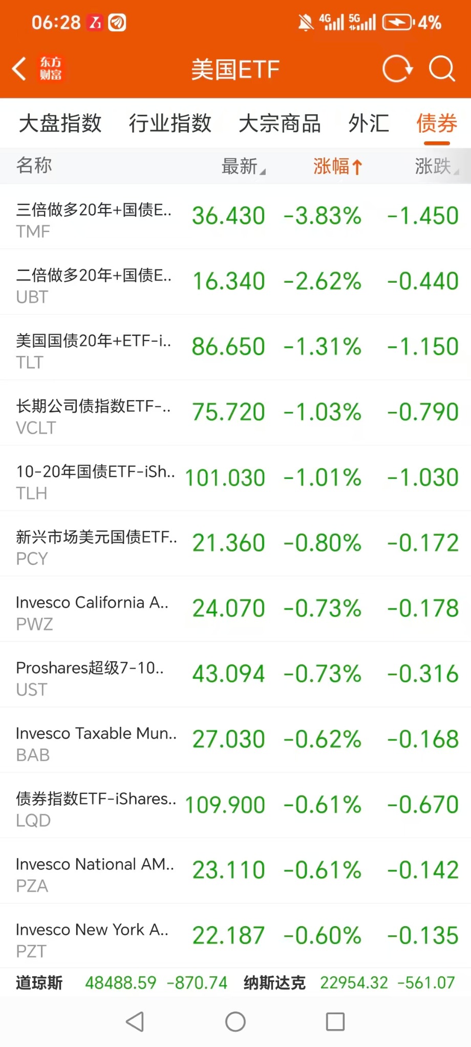 三倍做多20年期以上国债ETF-Direxion(TMF.US) 跌3.83%,成交额4.23亿美元。