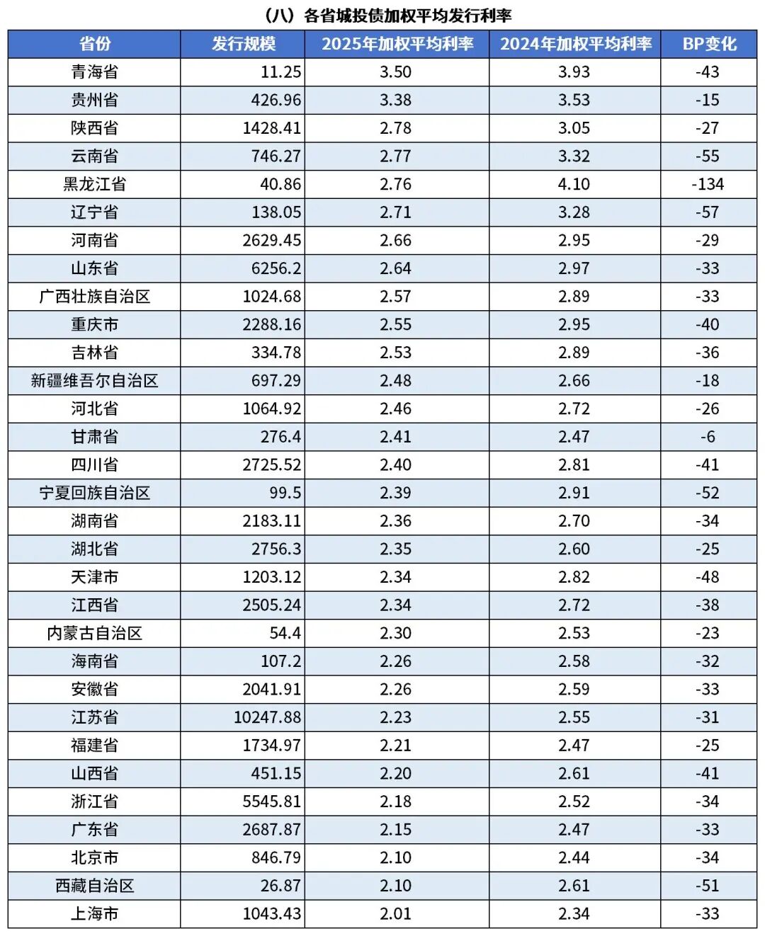 ■在市场流动性宽松的背景下,2025年全国城投债加权平均发行利率进一步下行,同比下降33BP至2.37%。