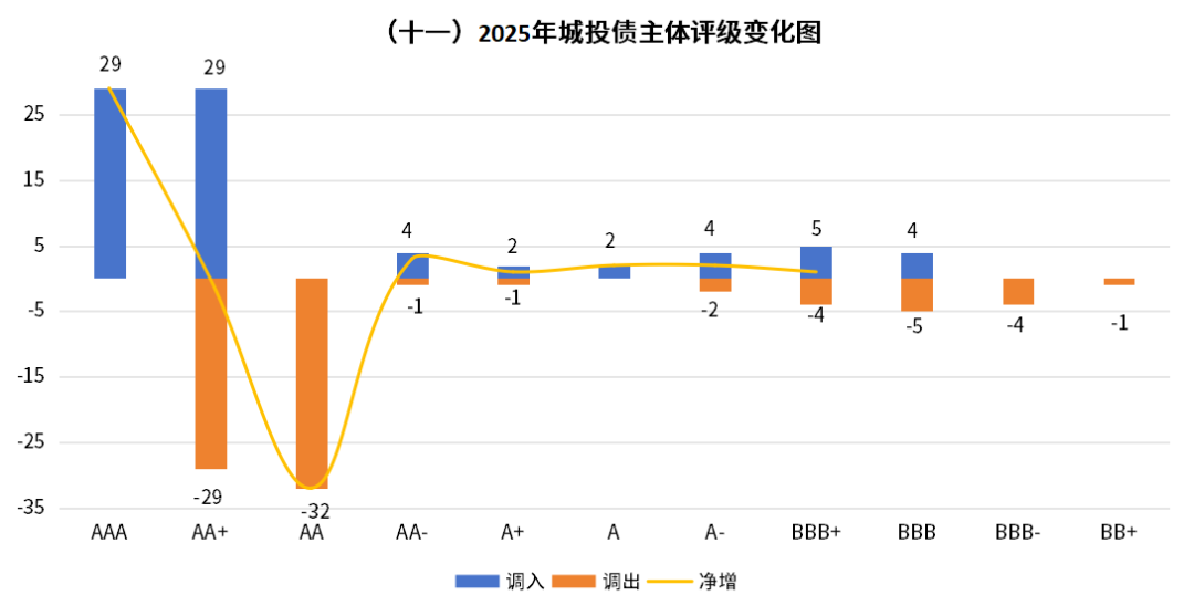 ■2025年,城投主体评级以上调为主。全年共有75家主体评级上调,其中29家上调至AAA,29家上调至AA+;仅4家主体评级下调,其中3家由AA下调至AA-,1家由AA-下调至A+。