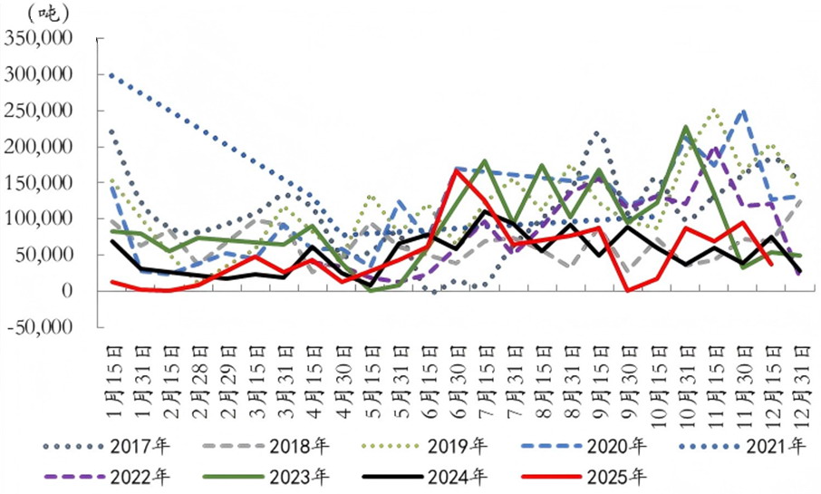 近期,马来西亚棕榈油延续减产态势且减产幅度扩大,出口则保持边际改善势头,供需格局转好,累库压力显著缓解,月度库存大概率环比回落。根据南部半岛棕榈油压榨商协会(SPPOMA)数据,1月1日—15日棕榈油产量环比减少18.09%,油棕树进入自然休整期,叠加外籍劳工短缺制约收割效率,减产幅度较上月同期明显扩大,且减产趋势有望延续。印度斋月备货及中国春节前补库需求释放,叠加印尼政策扰动下国际市场份额再分配,船运调查机构发布的数据显示马来西亚棕榈油出口量环比增加约18%。不过,当前库存基数仍处于历史高位,且印尼出口税等政策可能进一步调整,短期去库速度或减缓。