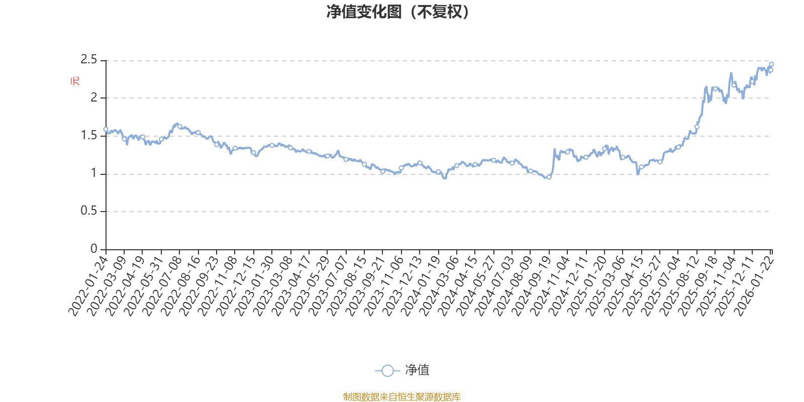 该基金属于偏股混合型基金。截至1月22日,单位净值为2.448元。基金经理是夏钦,目前管理的2只基金近一年均为正收益。其中,截至1月22日,财通多策略福享混合(LOF)近一年复权单位净值增长率最高,达80%;财通可持续混合最低,为77.62%。