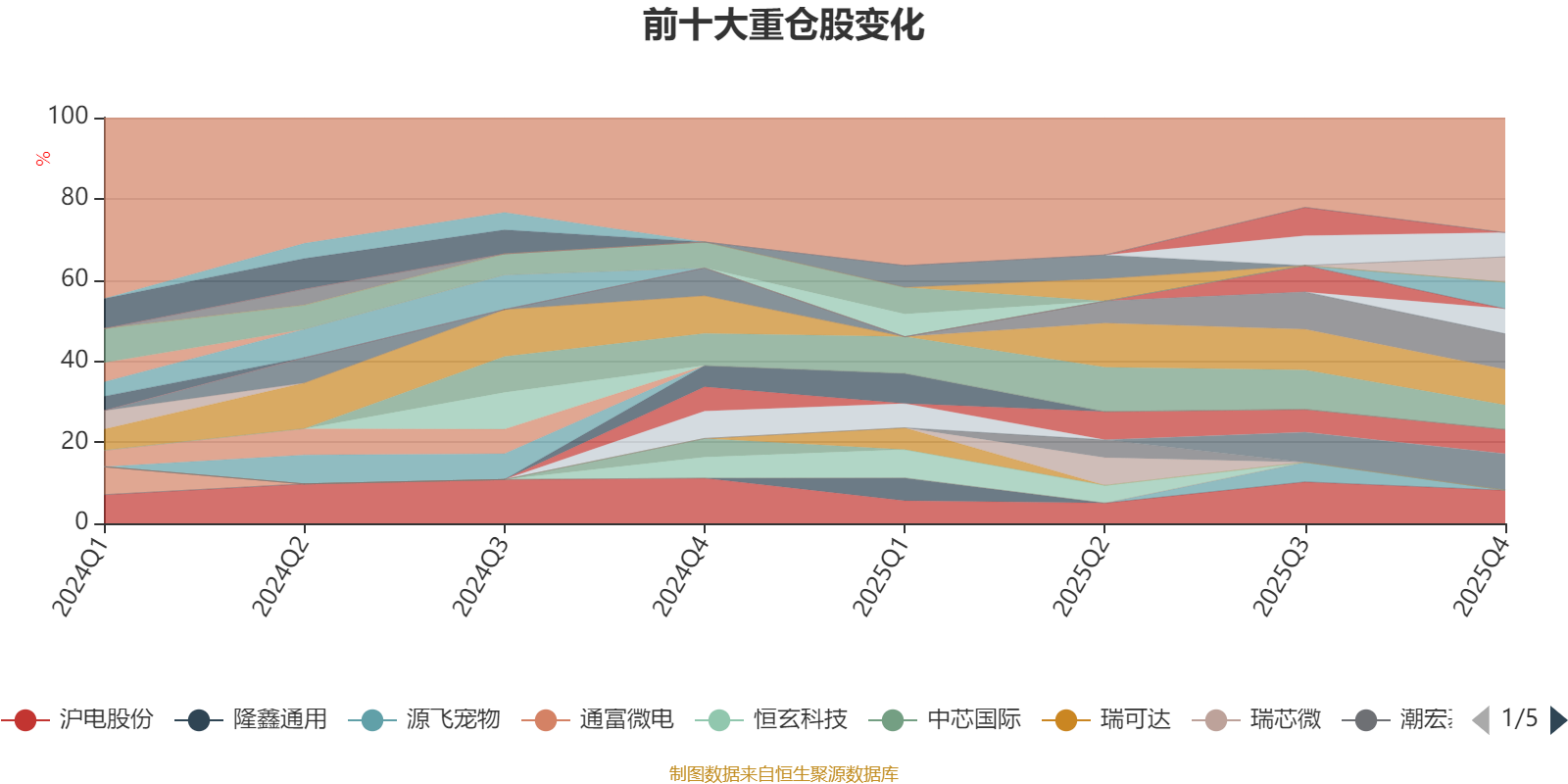 该基金持股集中度较高。截至2025年四季度末,基金十大重仓股分别是英维克、新易盛、寒武纪、沪电股份、中际旭创、源杰科技、洛阳钼业、生益电子、春风动力、深南电路。
