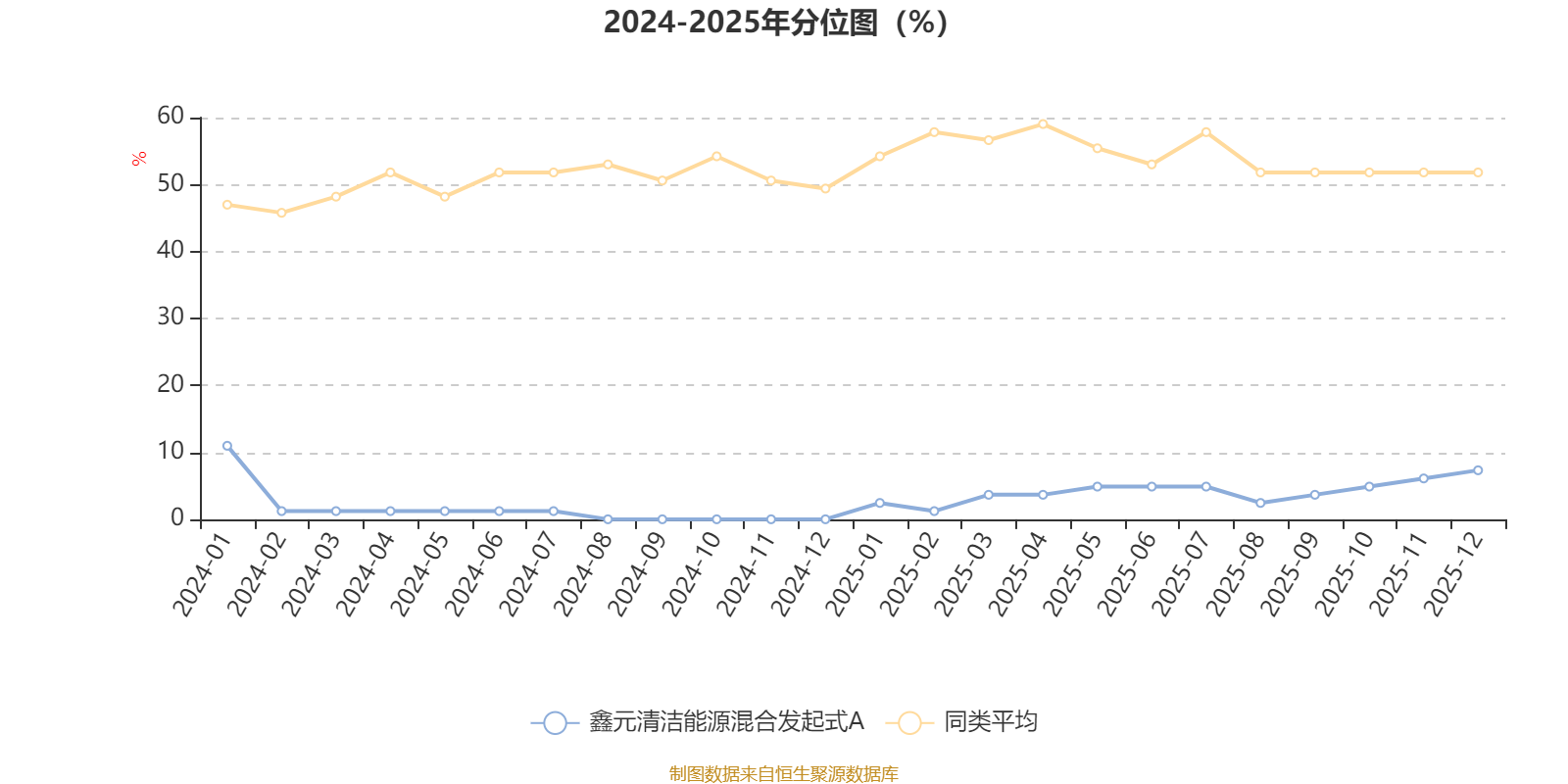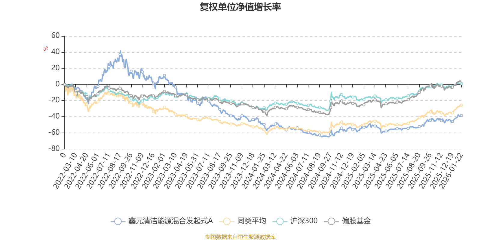 截至1月22日,鑫元清洁能源混合发起式A近三个月复权单位净值增长率为12.27%,位于同类可比基金52/100;近半年复权单位净值增长率为30.11%,位于同类可比基金60/100;近一年复权单位净值增长率为31.00%,位于同类可比基金73/92;近三年复权单位净值增长率为-43.49%,位于同类可比基金67/68。