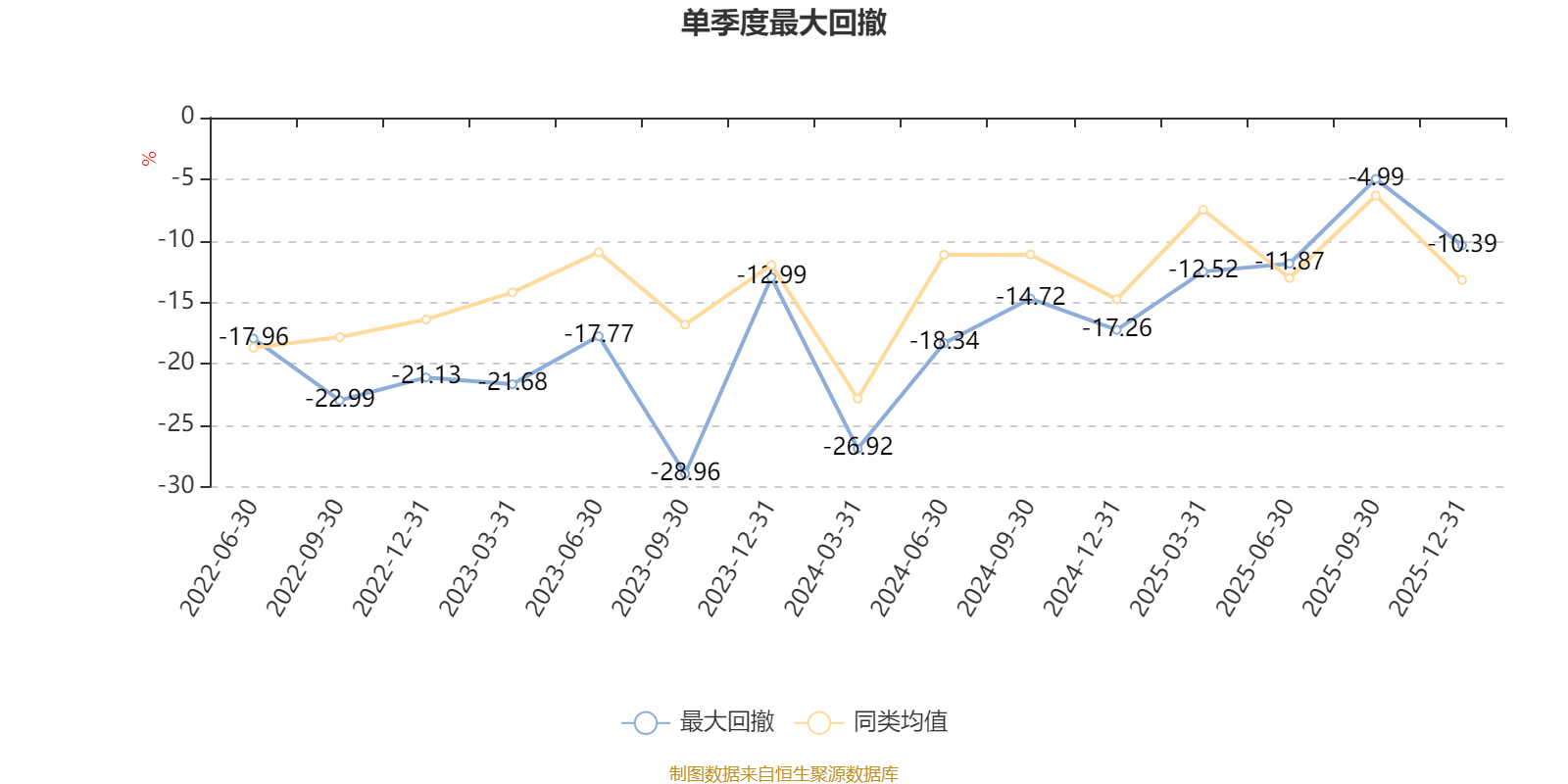 截至1月22日,基金近三年最大回撤为68.71%,同类可比基金排名66/66。单季度最大回撤出现在2023年三季度,为28.96%。