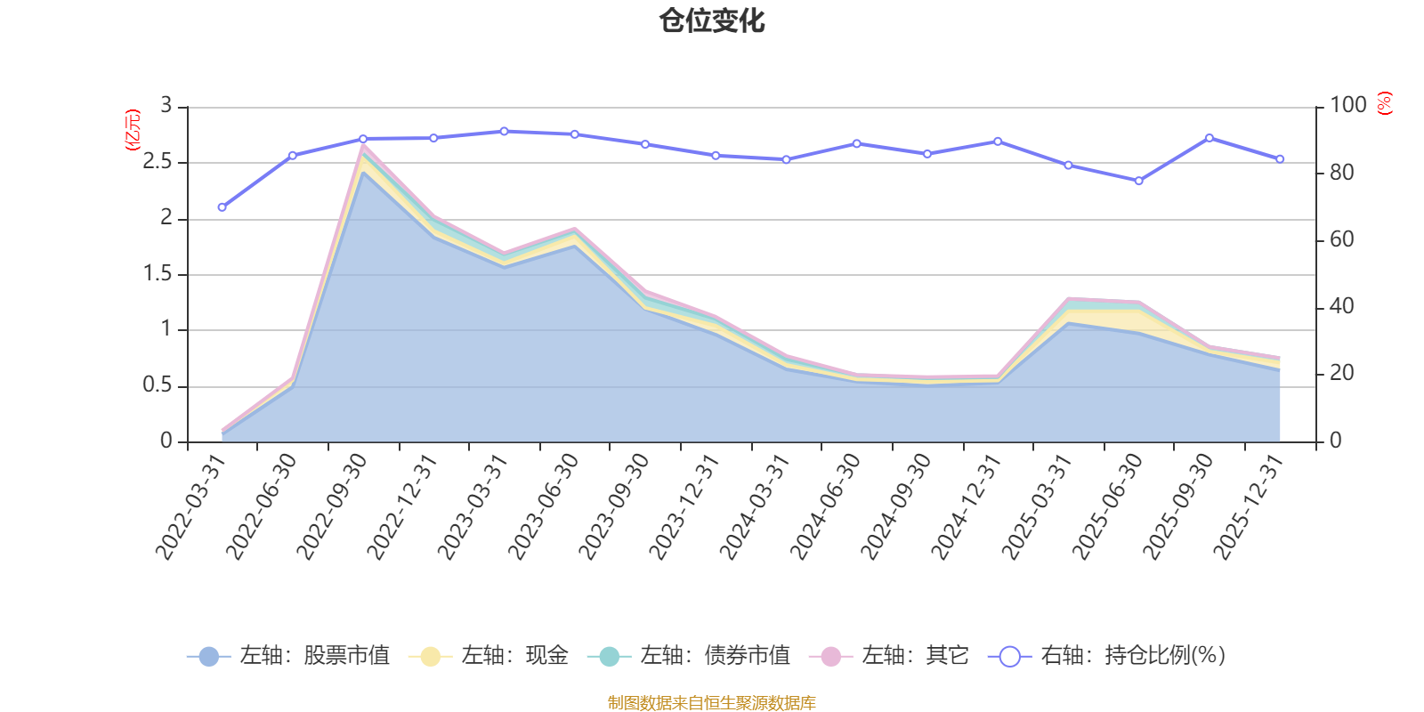 据定期报告数据统计,近三年平均股票仓位为86.94%,同类平均为87.15%。2023年一季度末基金达到92.71%的最高仓位,2022年一季度末最低,为70.03%。