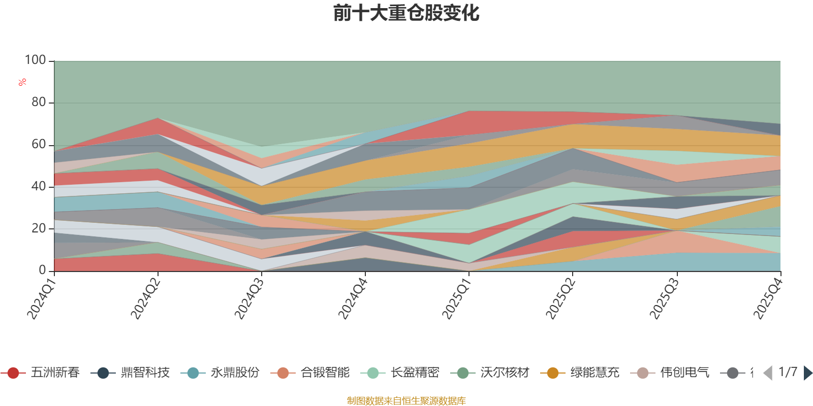 该基金持股集中度较高。截至2025年四季度末,基金十大重仓股分别是宁德时代、国光电气、永鼎股份、长盈精密、江淮汽车、浙江荣泰、鹏辉能源、厦钨新能、金盘科技、四方股份。