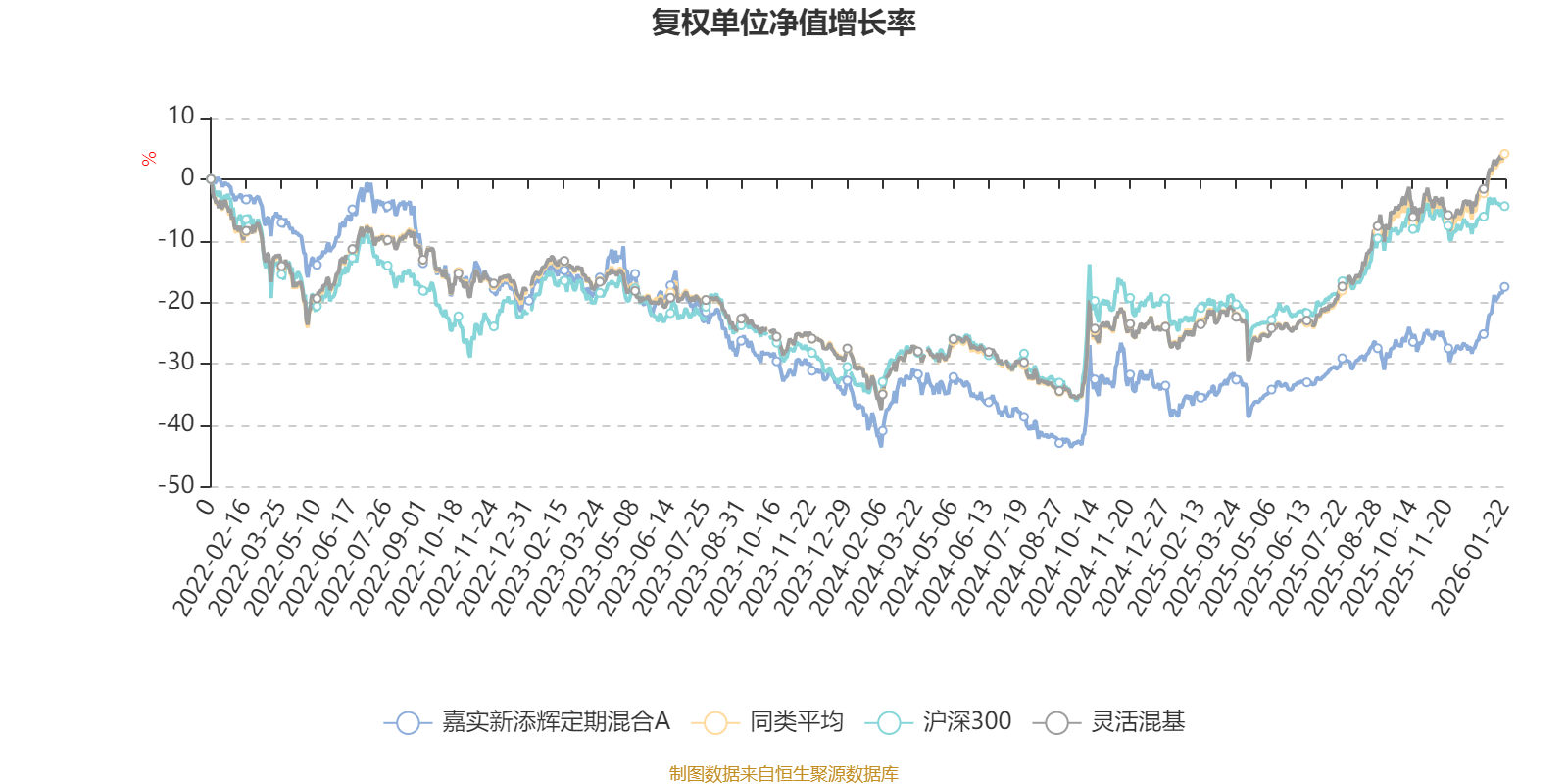 截至1月22日,嘉实新添辉定期混合A近三个月复权单位净值增长率为12.49%,位于同类可比基金417/1286;近半年复权单位净值增长率为16.37%,位于同类可比基金782/1286;近一年复权单位净值增长率为27.77%,位于同类可比基金760/1286;近三年复权单位净值增长率为-4.10%,位于同类可比基金1068/1286。