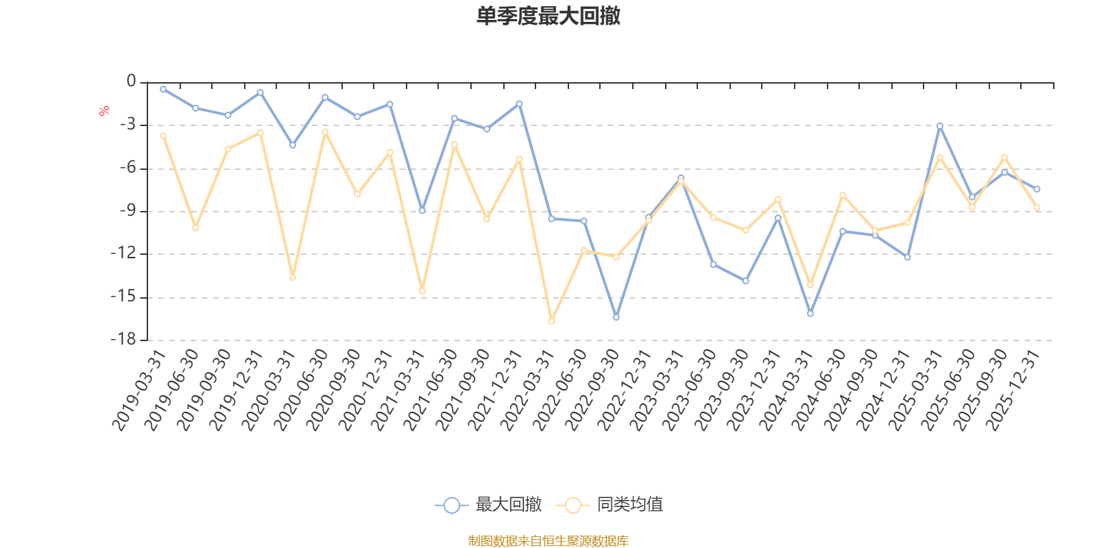 通过所选区间该基金净值增长率分位图,可以观察该基金与同类基金业绩比较情况。图为坐标原点到区间内某时点的净值增长率在同类基金中的分位数。