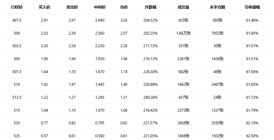 期权成交量排行榜