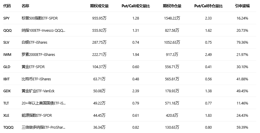美股ETF期权成交量排行榜前十