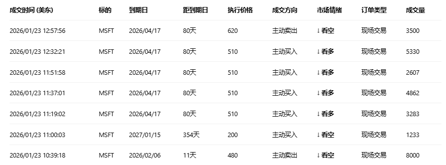 微软收涨3.28%,成交97.79万份期权合约,看跌/看涨成交量比升至0.53。微软将于1月29日发布财报,摩根士丹利预计Azure云业务二季度收入增长40%超预期,同时微软与百时美施贵宝合作开发AI肺癌诊断系统,股价上涨3.28%。