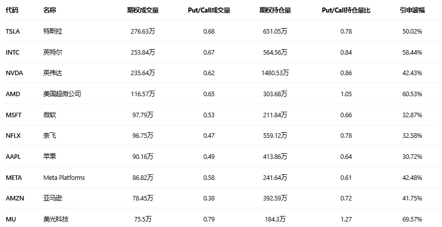 美股期权成交量排行榜前十